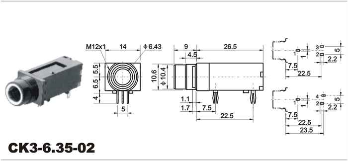 6.35插口系列主要技术指针Specifications of 6.35 phone jacks series