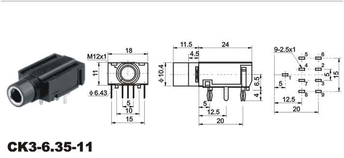 6.35插口系列主要技术指针Specifications of 6.35 phone jacks series