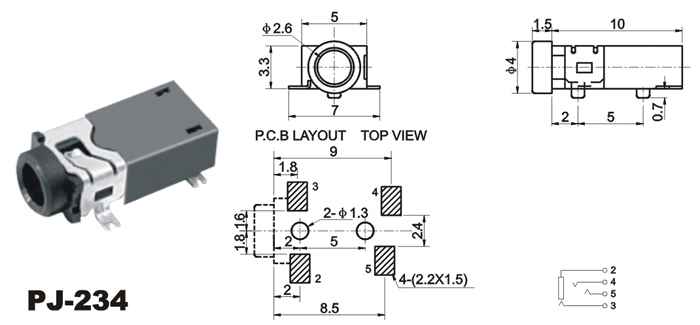 SMT插座系列主要技术指针Specifications of 2.5/3.5 phone jacks(SMT) series