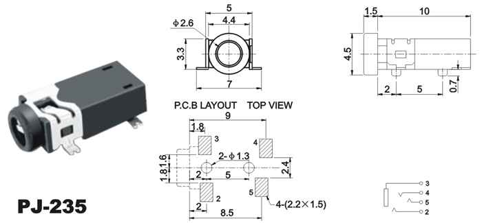 SMT插座系列主要技术指针Specifications of 2.5/3.5 phone jacks(SMT) series