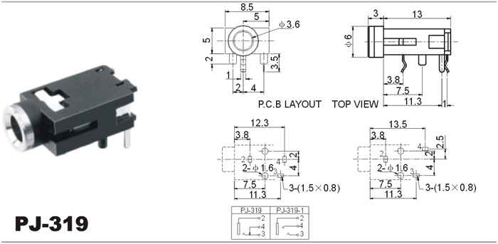2.5/3.5 SMT插座系列主要技术指针Specifications of 2.5/3.5 phone jacks(SMT) series