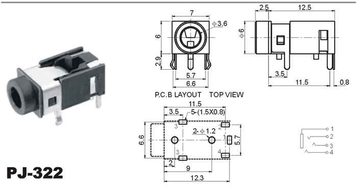 2.5/3.5 SMT插座系列主要技术指针Specifications of 2.5/3.5 phone jacks(SMT) series