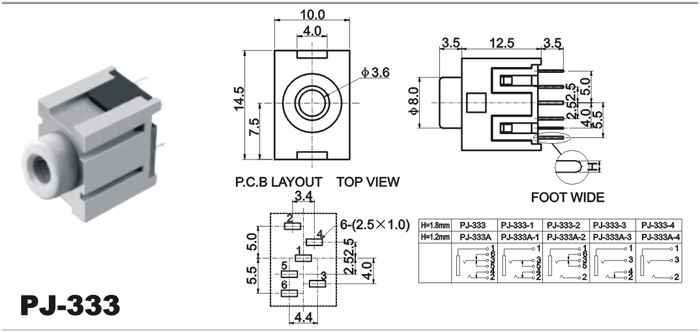 2.5/3.5 SMT插座系列主要技术指针Specifications of 2.5/3.5 phone jacks(SMT) series