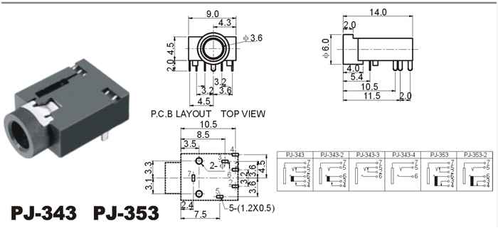 2.5/3.5 SMT插座系列主要技术指针Specifications of 2.5/3.5 phone jacks(SMT) series