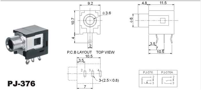 2.5/3.5 SMT插座系列主要技术指针Specifications of 2.5/3.5 phone jacks(SMT) series