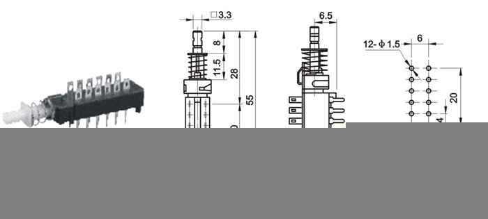 注:开关锁定形式分自锁和无锁Note: The switch locking form consists of Self-lock and Non-lock