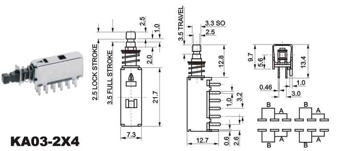 注:开关锁定形式分自锁和无锁Note: The switch locking form consists of Self-lock and Non-lock